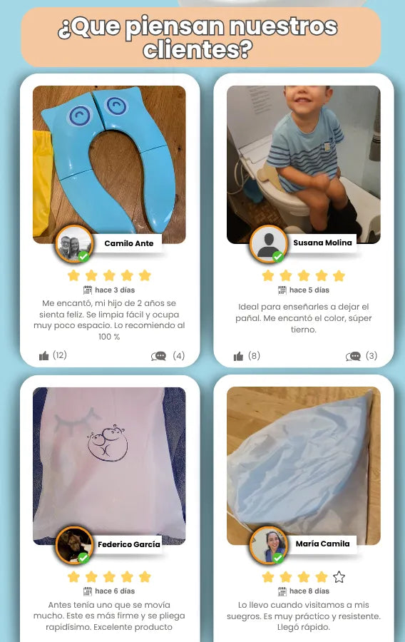 No 🚫. Su base cuenta con antideslizantes de silicona que lo fijan al asiento del baño, evitando movimientos o desplazamientos al sentarse.