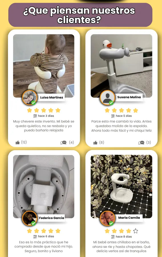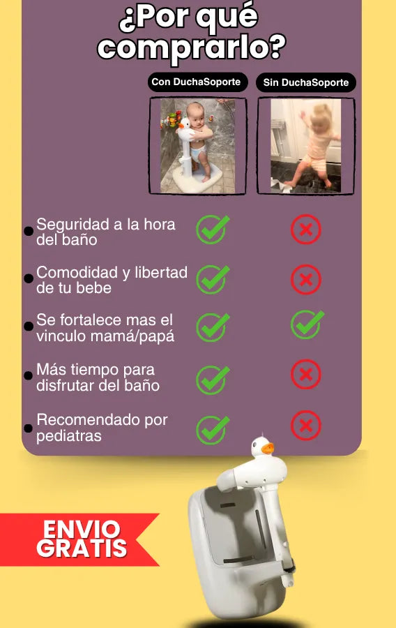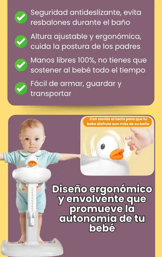 ¡Sí! DuchaSoporte Kids® cuenta con base antideslizante, estructura envolvente y materiales de alta resistencia que mantienen a tu bebé firme y protegido durante todo el baño.